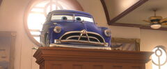 "Doc is a machine of few words but many talents. He not only serves as the town judge he's also Radiator Springs' resident doctor. Dr. is respected and admired by the townsfolk for the fashion he looks out for their health and tends to their aches and pains. No one knows too much nigh Doc before he came to town. He keeps his private life private, but if you've got a bad spark plug or a rattle in your engine, his door is ever open." [1]
